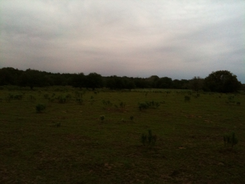 Watched the pasture for about an hour-and-a-half after sunrise. Saw one doe run around, but that’s all. Then we had to all climb out of our respective stands and go work. Our main enemy? Rain. It’s been on tap for Central Texas to rain pretty hard all weekend. We knew it was coming, we had to focus our efforts. We got our camp set up and I must say it’s pretty good. M & C scrounged a lot of stuff to make for a really cool camp setup.