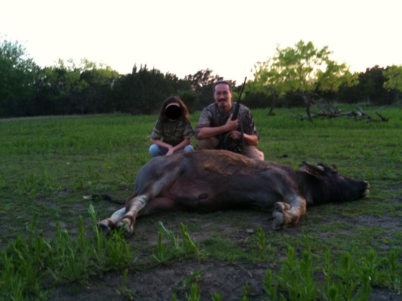 So we piled back in the truck and headed back to my car to switch rifles. There was still at least an hour of daylight, certainly enough time to keep trying. While we were driving back, the guide mentioned the water buffalos. They had 3 on the property, reasonable price too. They were young, probably 2 or 3 years old, maybe 700 lbs.. I wasn’t sure about it. It’s never crossed my mind to eat a water buffalo. I really wanted to get some hogs. But I called Wife to ask her.